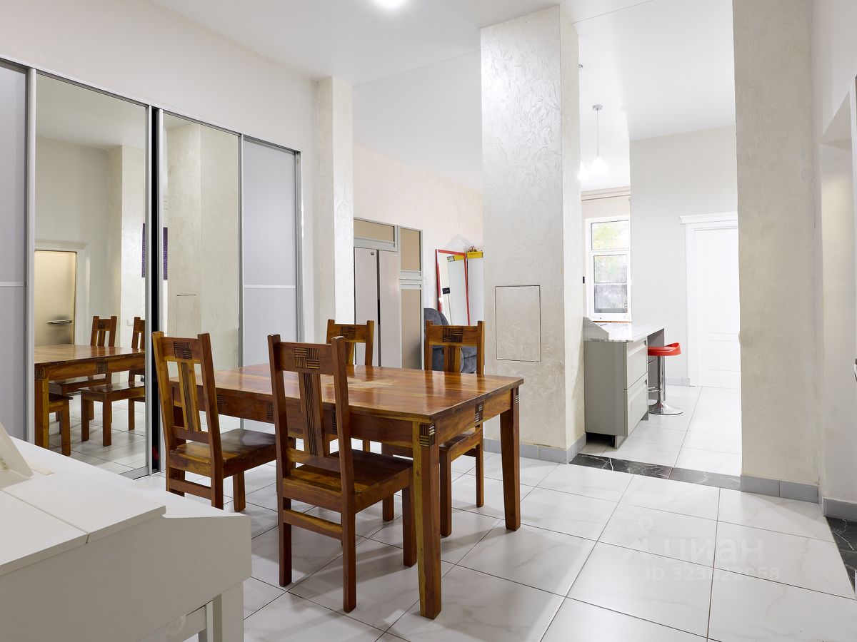 Планировка удобная и функциональная: вместительная прихожая с гардеробным шкафом, большая кухня-гостиная с островом, встроенной мебелью и техникой, три изолированные спальни, полностью оборудованы кроватями, гардеробными и мебелью (две на первом уровне, одна на втором этаже), два раздельных санузла, большое количество зон хранения и скрытых ниш. В квартире выполнен качественный ремонт с дорогими отделочными материалами и уникальными элементами декора. Высота потолков составляет 4 метра, что создает полное ощущение загородного дома. В квартире имеется два входа: со внутреннего двора (с отдельной личной нишей для хранения велосипедов, колясок и крупногабаритных вещей) и со стороны собственного сада-патио, полностью облагороженного, выполненному по эксклюзивному ландшафтному дизайн-проекту.