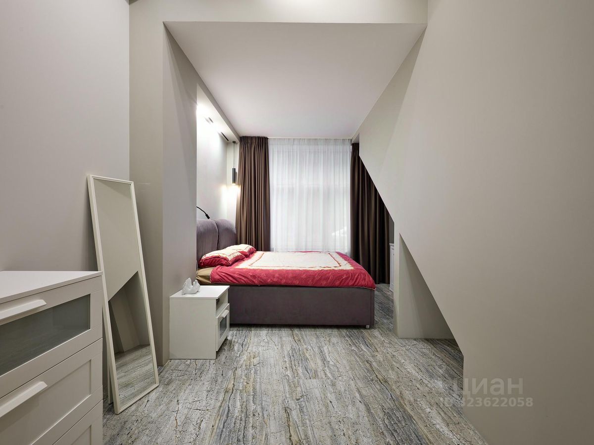 Двухуровневая сити-вилла с дизайнерским ремонтом и собственным патио в доме бизнес класса на Ждановской улице.