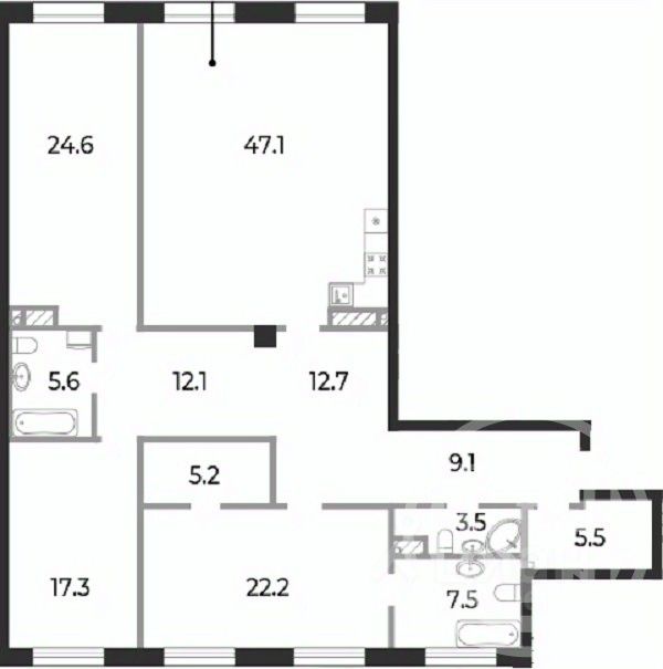 Именно здесь на 8 этaже 9-ти этажного дoмa элитного класса, находится наша просторная трехкомнатная квартира, площадью 173 квадратных метра. Продуманная до мелочей планировка и отсутствие внутренней отделки позволит Вам осуществить все самые, казалось бы, не исполнимые дизайнерские решения !