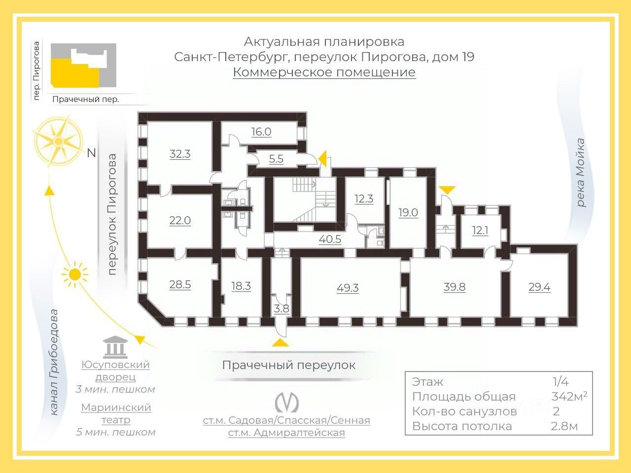 Вход в метро - 3 минуты пешком, вестибюль станции метро ''Театральная'' будет расположен на Театральной площади,7. Рядом набережная реки Мойки, Юсуповский дворец, Исаакиевский собор, в пяти минутах пешком Мариинский театр. Подойдет под размещение офиса, торговой точки, склада, спортивного зала, гостиничного бизнеса.