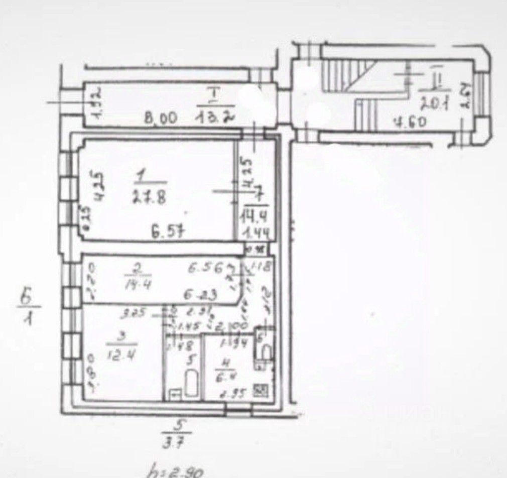 Квартира располагается на первом этаже кирпичного 4-х этажного дома 1877 г. п., капремонт выполнен в 1954 г., тип перекрытий - смешанные по документам, по факту в одной комнате и в коридоре при входе в квартиру.