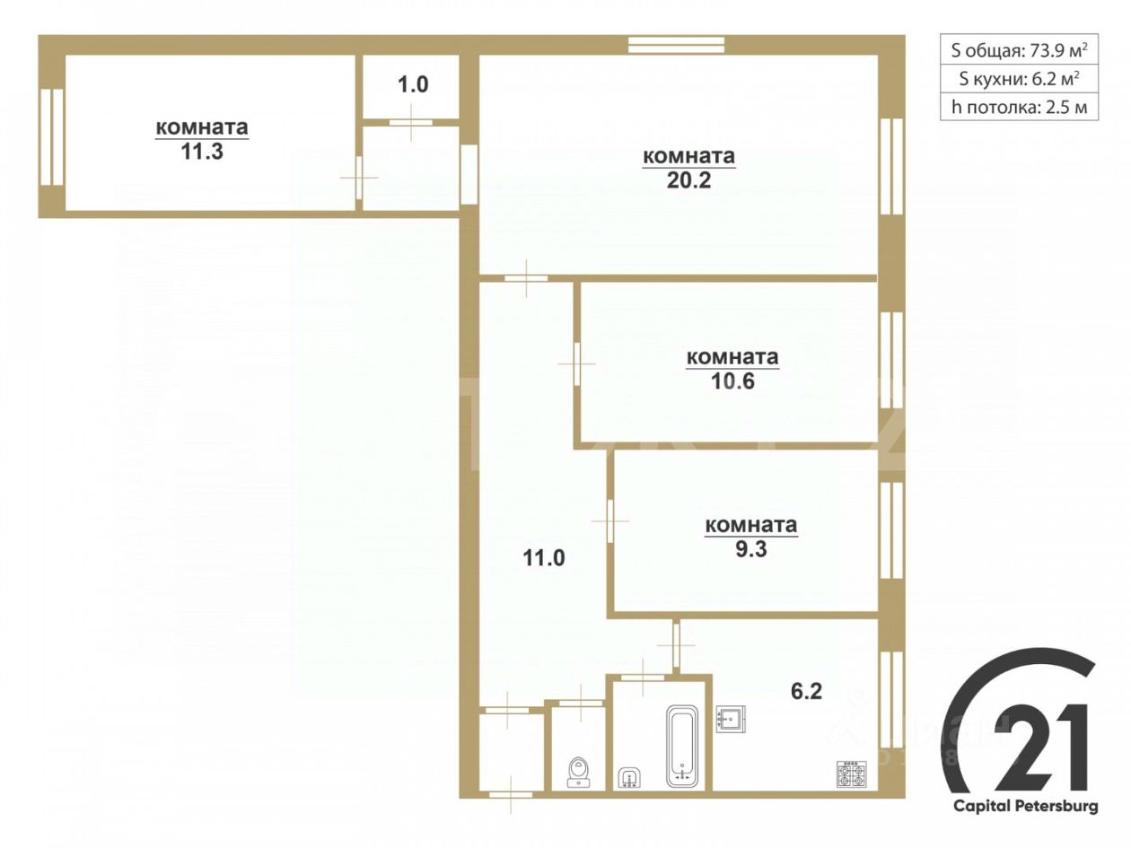 О КВАРТИРЕ: общая площадь 73,9 м2 площадь комнат: 20,2 м2, 11,3 м2, 10,9 м2, 9,3 м2 три изолированные комнаты, одна проходная площадь кухни 6,2 м2 просторный коридор раздельный санузел в квартире выполнен косметический ремонт. Заменена электропроводка, выровнены полы, установлены пластиковые стеклопакеты, частично заменены радиаторы отопления.