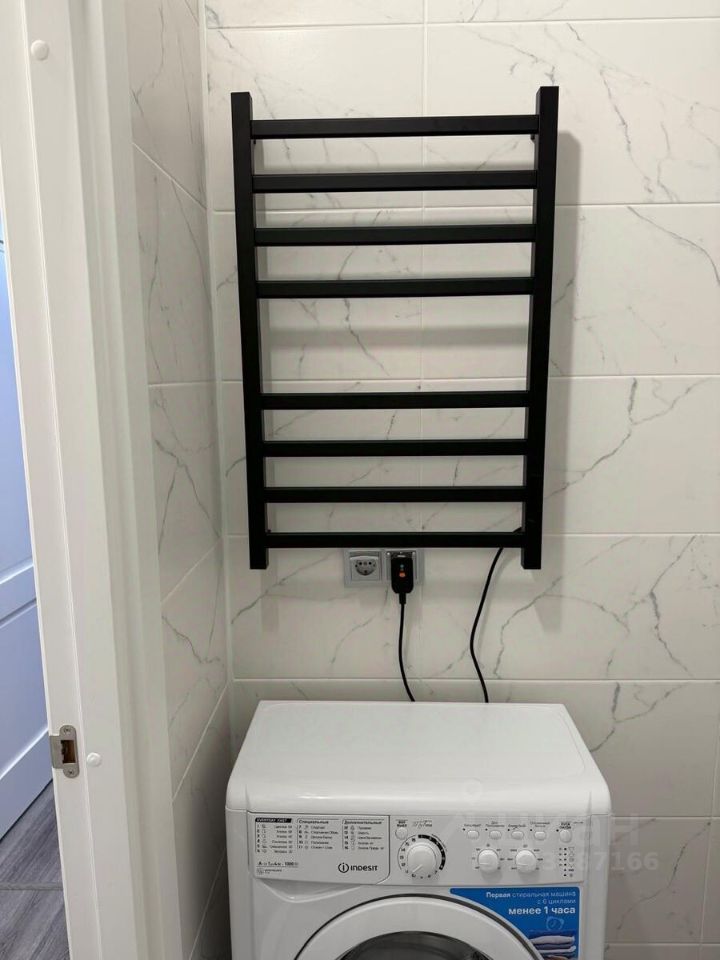 Ванная комната облицована керамической плиткой от пола до потолка, потолки натяжные. Есть стиральная машина.