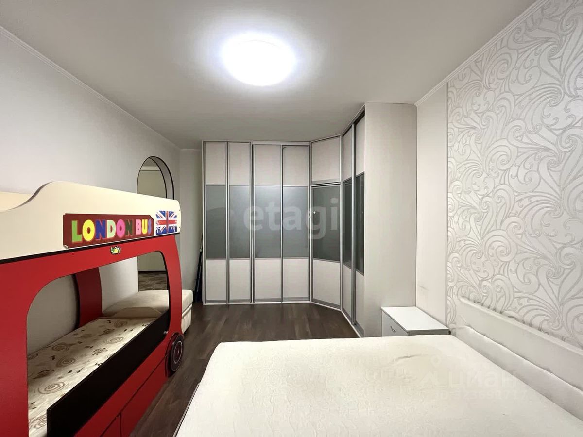 Спальня с окнами во двор обустроена удобной кроватью с подъемным механизмом, функцией массажа, вместительными шкафами для хранения, детская кровать.