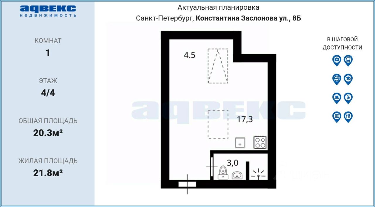 продам 1-к, Константина Заслонова, 8б10 212 000 ₽