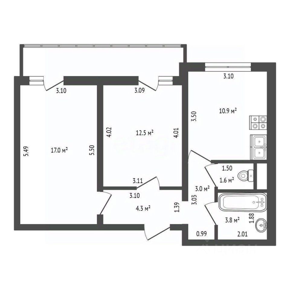 ХАРАKТEРИCTИKA KBАРTИPЫ: • Общая площадь 53.1 кв. м грамотно организована: изолированные комнаты и кухня 10.9 кв. м. создают комфортное личное пространство. • Высота потолков 2.5 метра и готовая отделка усиливают ощущение простора и позволяют заселиться сразу после покупки. • В квартире есть раздельный санузел и утепленный балкон (7.3 кв. м.), которую можно функционально обустроить.