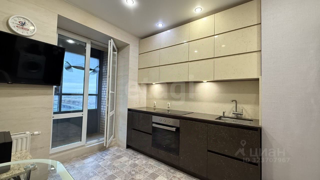Просторная кухня оборудована всей необходимой мебелью и техникой. Из кухни выход на балкон.