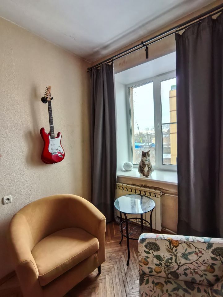 Квартира с косметическим ремонтом, Уютная комната площадью 24 кв. метра, кухня площадью 9 квадратных метров, есть вся необходимая техника, холодильник и стиральная машина. Окна выходят во двор, что обеспечивает тишину и уют, всегда есть свободные парковочные места во дворе.