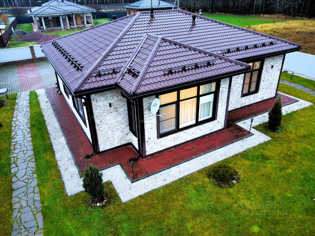 Дом одноэтажный, общей площадью - 146 кв.м. Фундамент: утепленная железобетонная плита толщиной 400мм, Стены: Газобетон толщиной 400 мм с утеплением 50мм, Кровля: Металлочерепица, Фасад: декоративные элементы. Установлены двухкамерные энергоэффективные стеклопакеты.