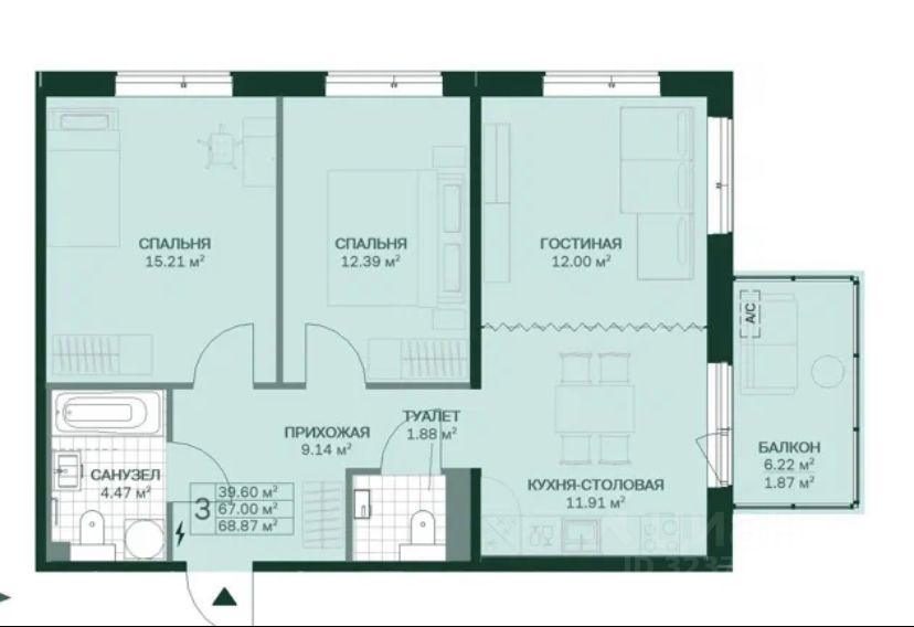 2 санузел: полноценная ванна, много мест для хранения, гигиенический душ с терморегулятором.