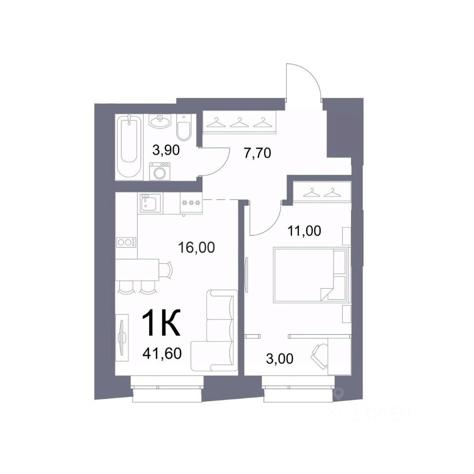 Общая площадь41,6 м2