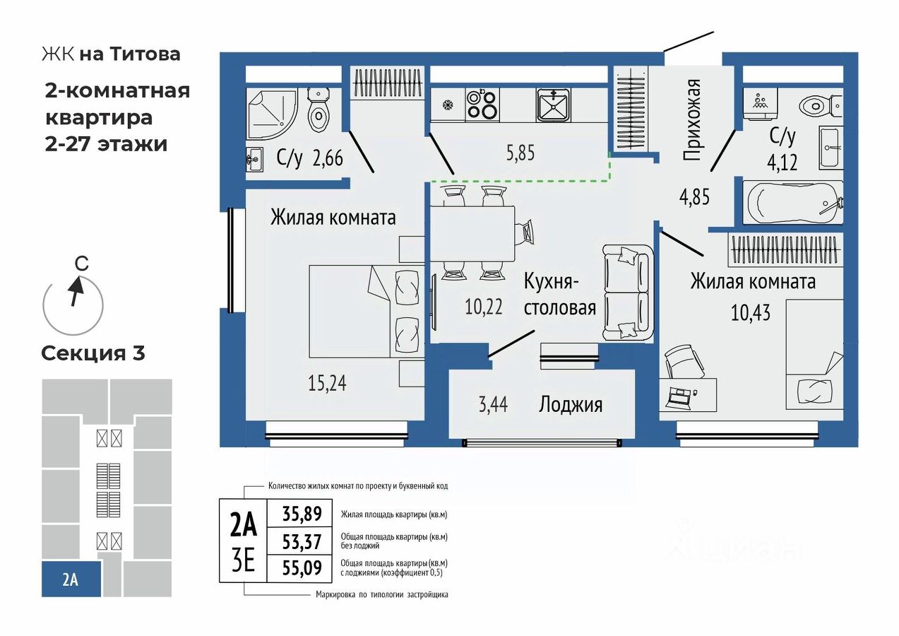 продам 3-к, Титова, 19.1 стр.8 662 980 ₽