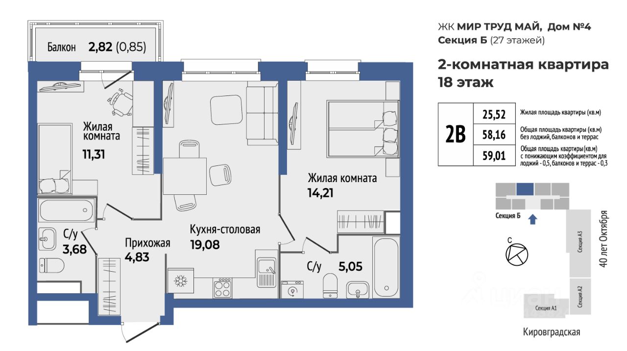 продам 2-к, 40-летия Октября, 31 стр.9 441 600 ₽