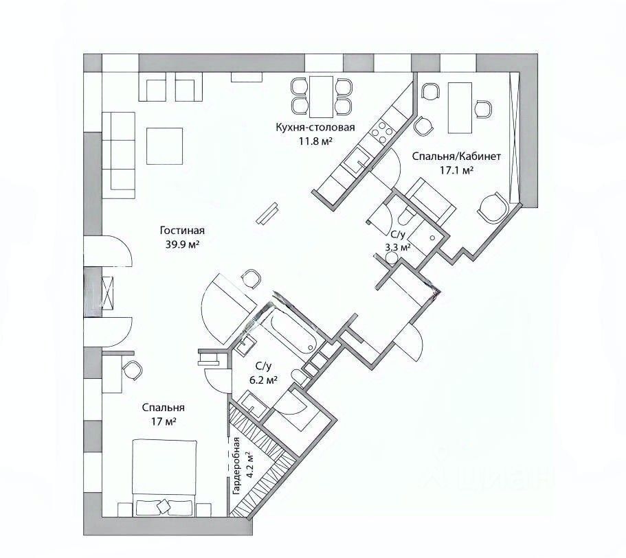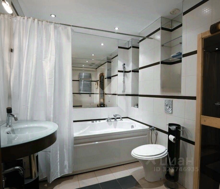 Все окна выходят в тихий закрытый двор. Планировочное решение включает изолированные помещения: просторная кухня. столовая - гостиная 2 спальни с собственной гардеробной, вторую комнату 17 кв. м для использования в качестве кабинета или детской, два санузла и уникальный объект — финскую сауну 2.7 кв. м с джакузи.