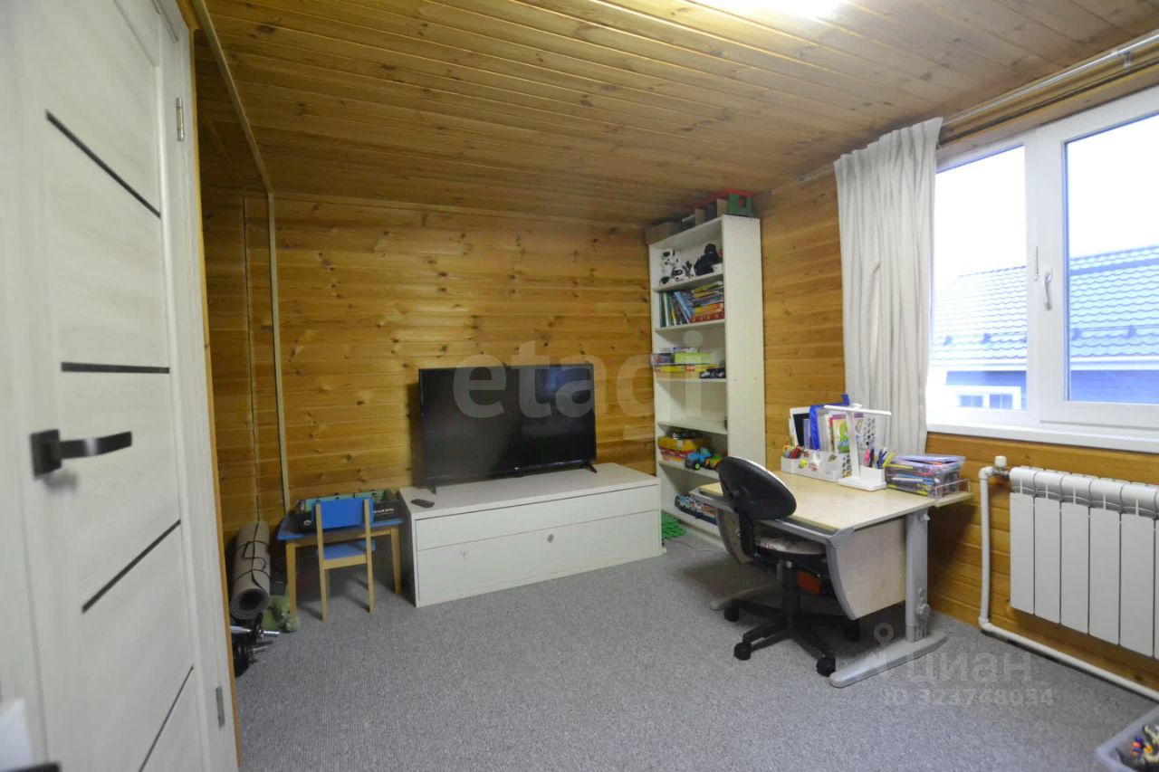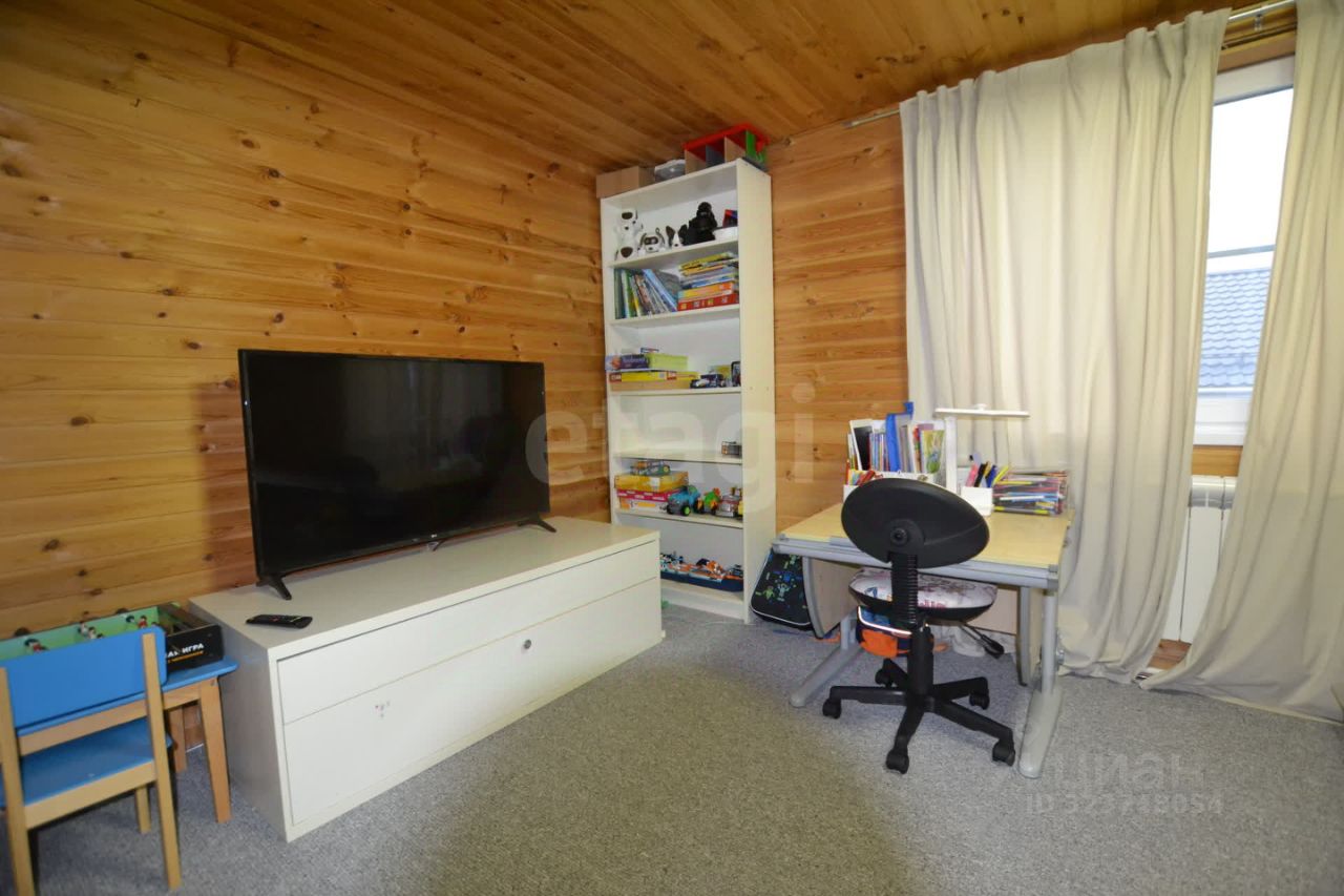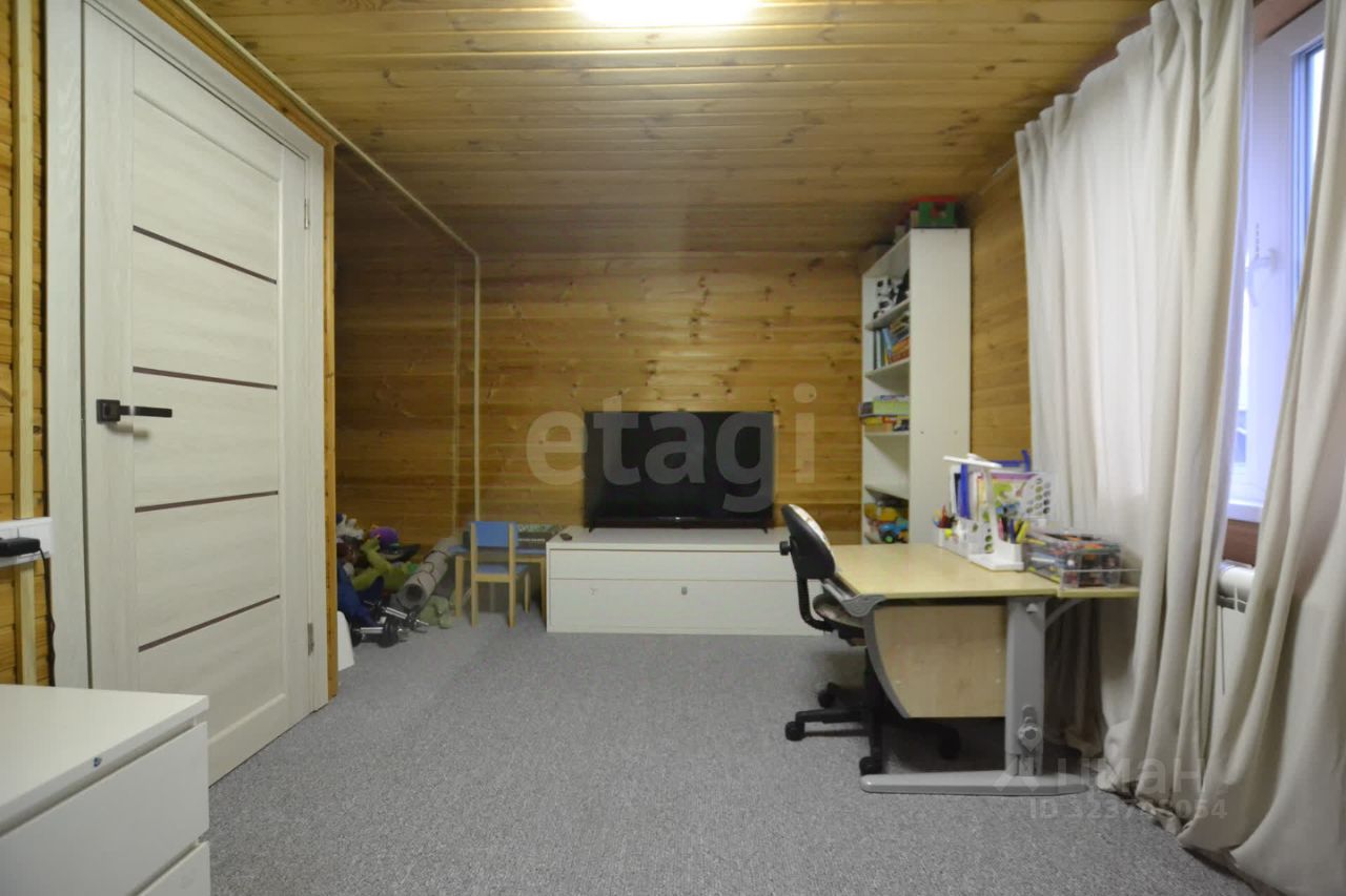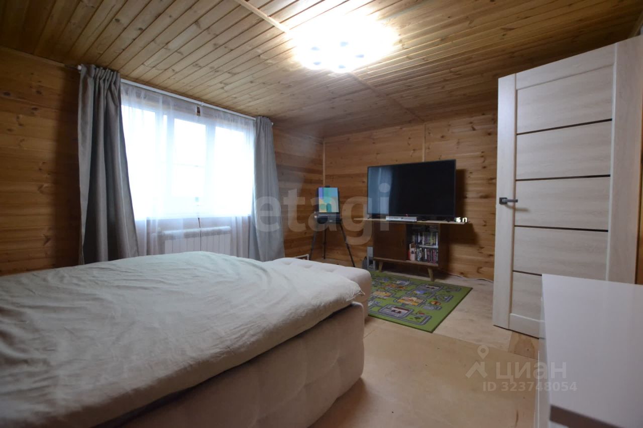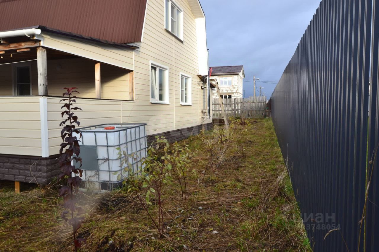 На участке обустроена открытая парковка и функциональный сарай для хранения инвентаря, подведен газ и смонтирован септик. Внутренняя планировка включает три изолированные спальни и просторную кухню-гостиную на первом этаже, что создает комфортные условия для жизни семьи. Из окон второго этажа открывается вид на собственный участок и окружающий пейзаж.