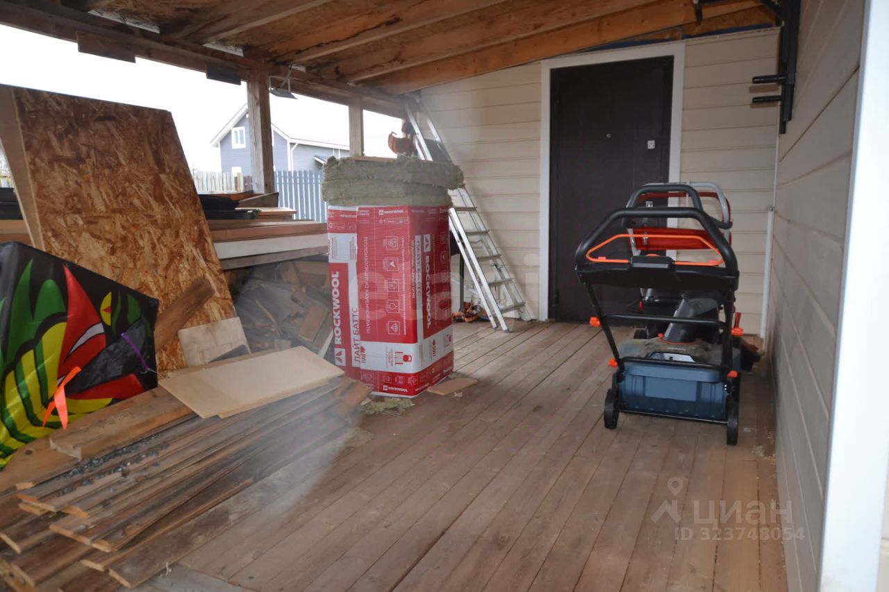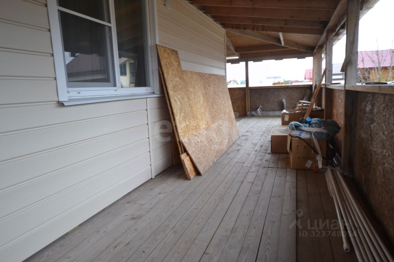 Здание построено из бруса 15 см с фасадной отделкой сайдингом, что обеспечивает дополнительную защиту и минимальные затраты на обслуживание. К дому пристроена большая закрытая веранда, которую можно использовать как зону отдыха в любое время года, а также хозяйственный блок с котлом для дровяного отопления.