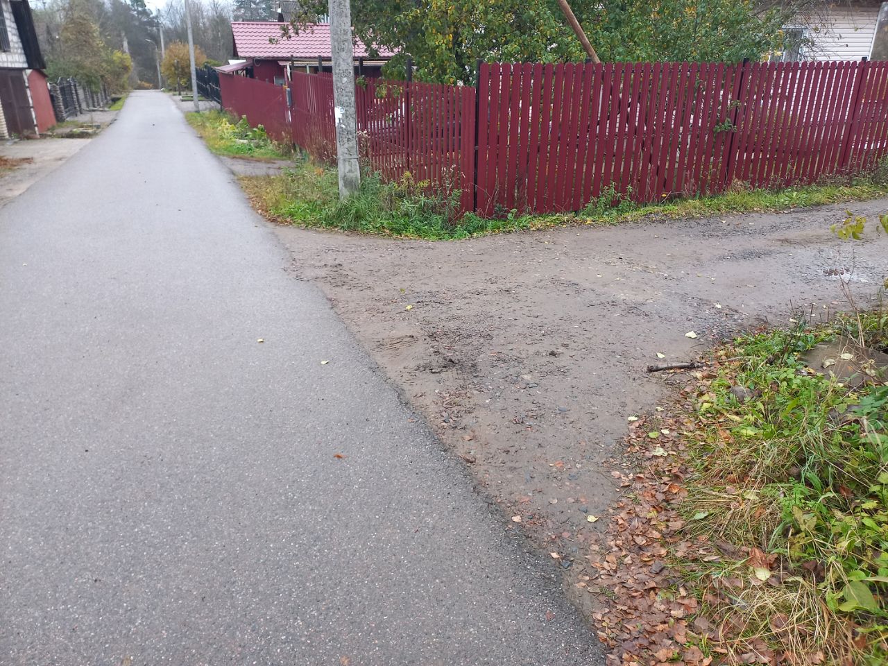 Участок на первой линии от реки, на фото показано, где речка. Участок ровный и сухой, расположен в конце переулка, поэтому есть дополнительные места под парковку в тупиковой части переулка. К участку идет дорога из щебенки, через 70 м и далее — асфальт.