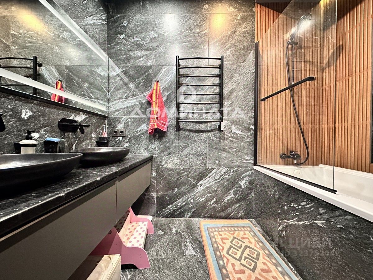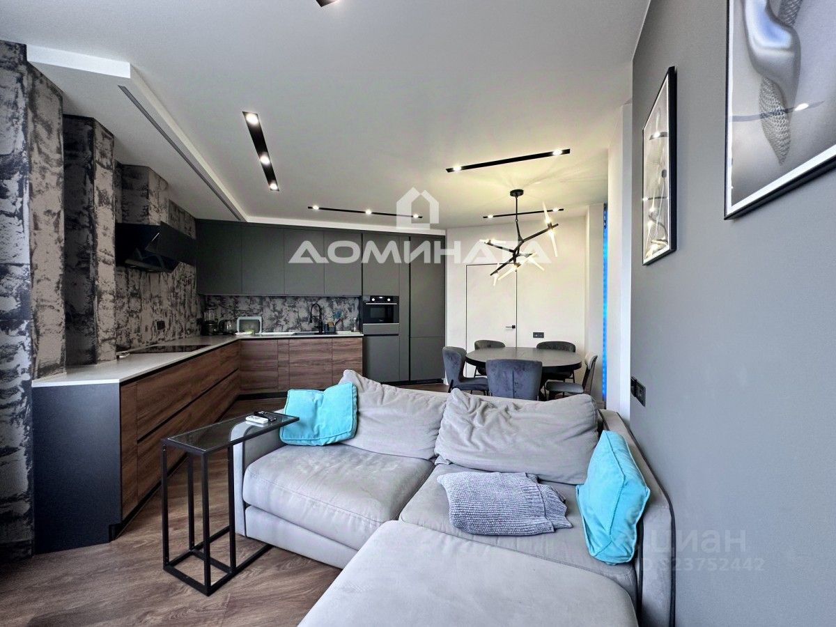 В квартире всё сделано по индивидуальным проектам на заказ. Использованы максимально дорогие и качественные материалы. Продуманная система кондиционирования и шумоизоляции. Уникальное интерьерное решение - дизайнерское освещение.