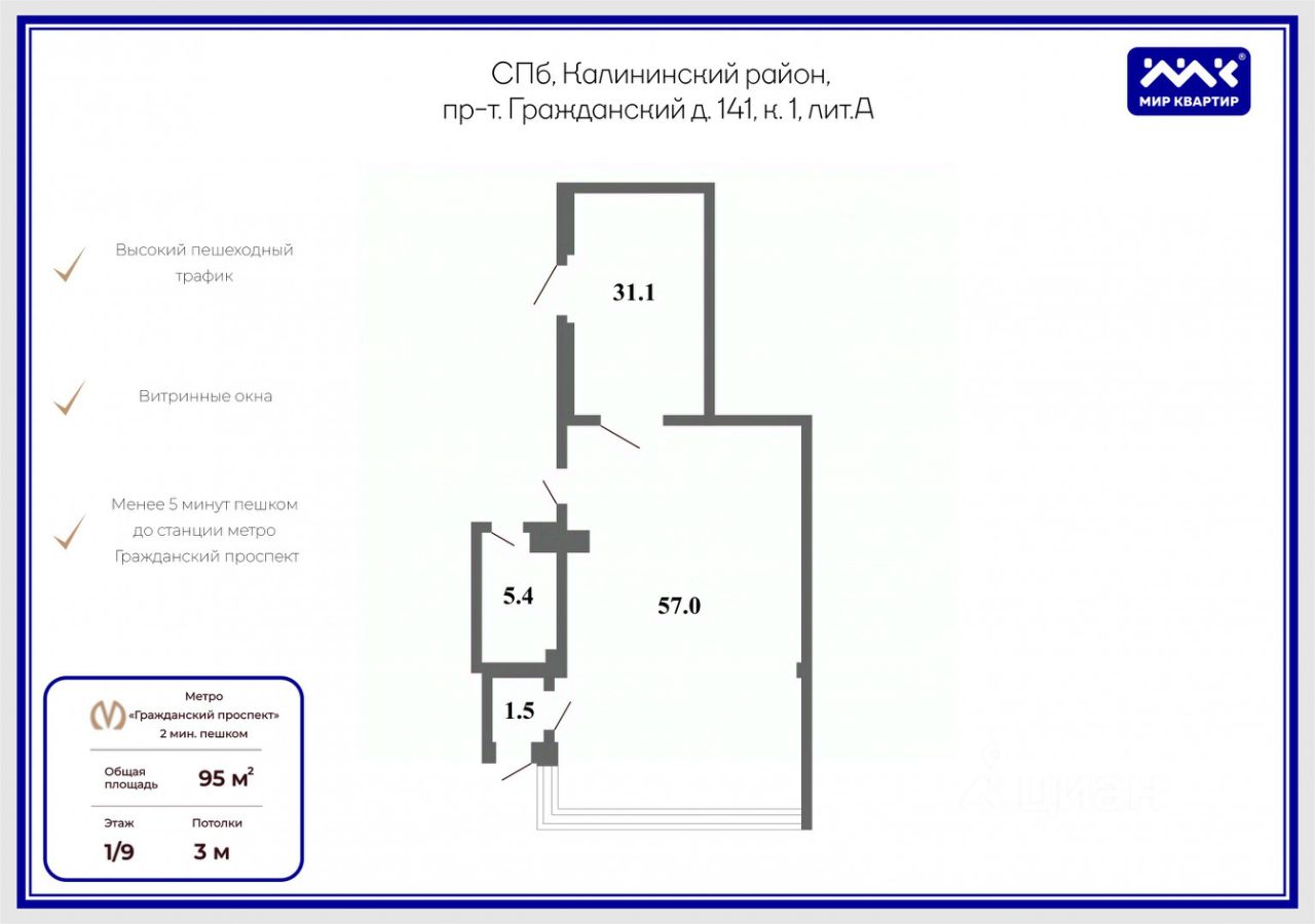 Арт. 84871170 Вашему вниманию предлагается в аренду помещение по адресу: Санкт-Петербург, Гражданский проспект, дом 114, корпус 1.