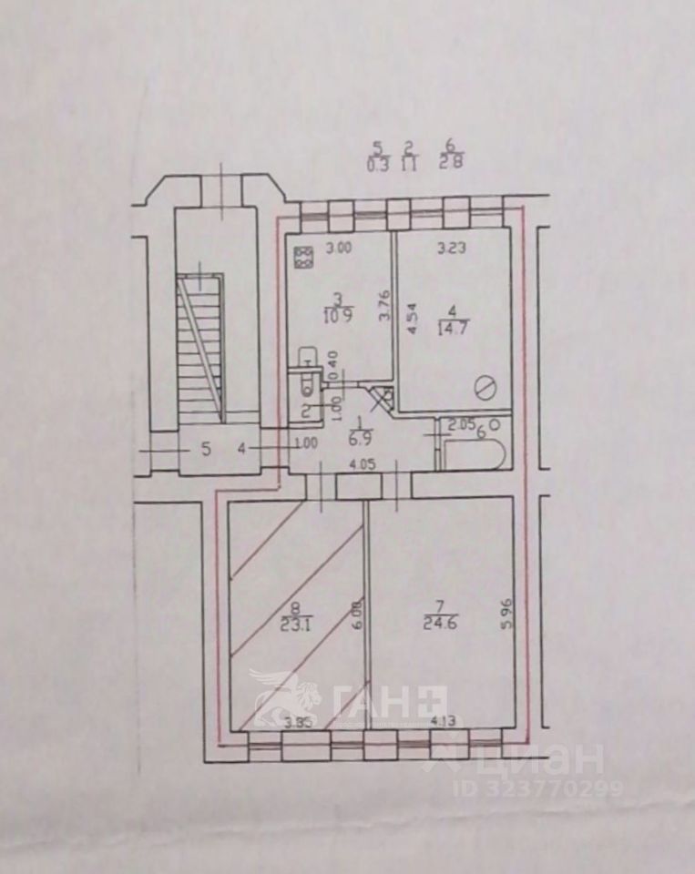 Общая площадь 84,4 кв. м., кухня 10,9 кв. м., В квартире всего 3 комнаты (24,6, 23,1, 14,7) кв. м. Продается комната 24,6 кв. м. Потолки 3,35 м.