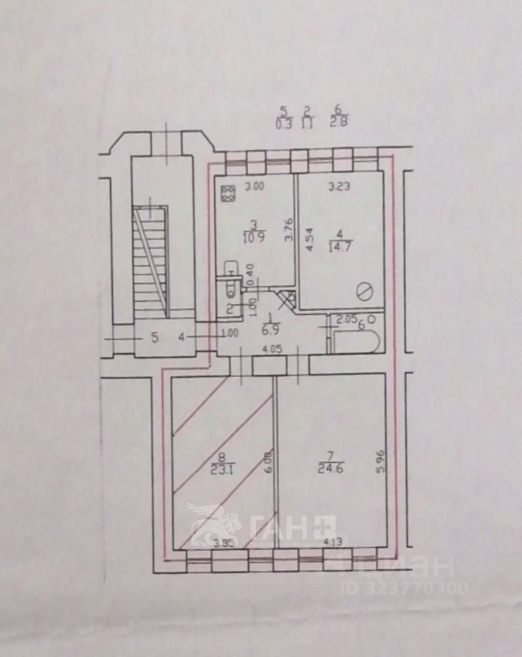 Общая площадь 84,4 кв. м., кухня 10,9 кв. м., В квартире всего 3 комнаты (24,6, 23,1, 14,7) кв. м. Продается комната 14,7 кв. м. Потолки 3,35 м.