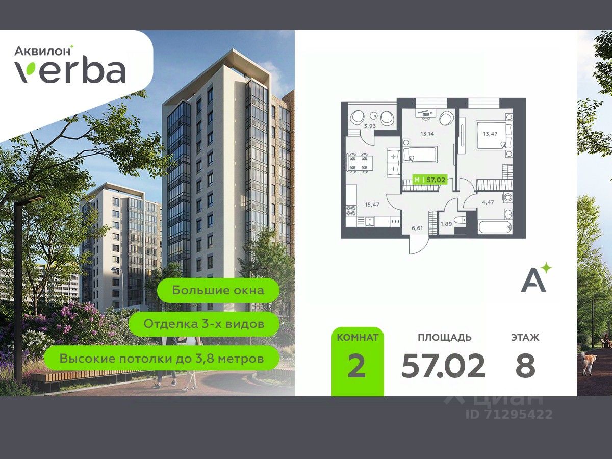 Квартира в жилом комплексе класса комфорт+ ''Аквилон VERBA''