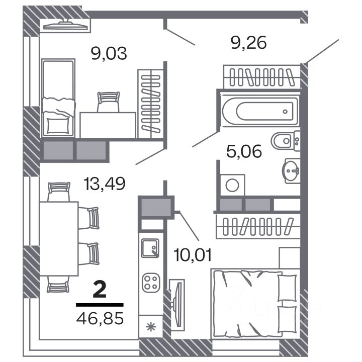 Продаётся 2-комнатная квартира в строящемся доме (Корпус 1), срок сдачи: IV-кв. 2028, общей площадью 46.85 кв.м., на 20 этаже. Новый жилой комплекс ''по ул.Быстрецкая'' от застройщика ''Северная Компания'' расположен по адресу Россия, Рязань, Быстрецкая улица.