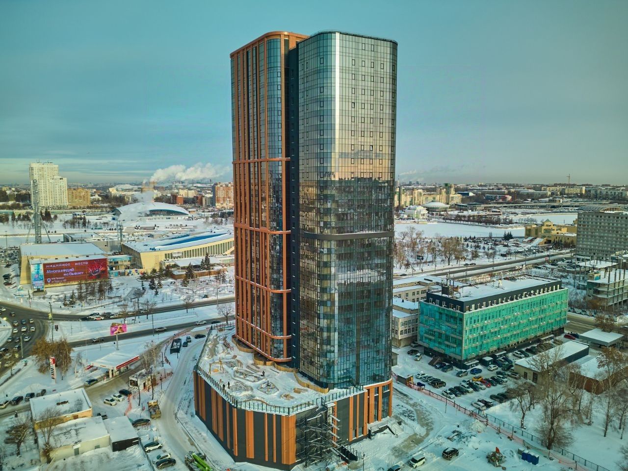Комплекс апартаментов ''Голос в сердце города'' — это флагманский проект бизнес-класса в самом центре Челябинска. Представьте себе жизнь в 31-этажной башне, в окружении всех удобств и развлечений центра города. Рядом с комплексом находятся престижные школы, детские сады, Дворец пионеров, КРК ''Мегаполис'', набережная реки Миасс и множество культурных объектов. Архитектура тщательно прорабатывалась, чтобы башня гармонично вписалась в окружение. Элементы фасада медного оттенка перекликаются с соседними зданиями на ''Алом поле'' Дворцом пионеров и храмом Александра Невского. Территория вокруг проекта будет благоустроена, создавая уникальное пешеходное пространство от сквера Алое поле до набережной Миасса.
