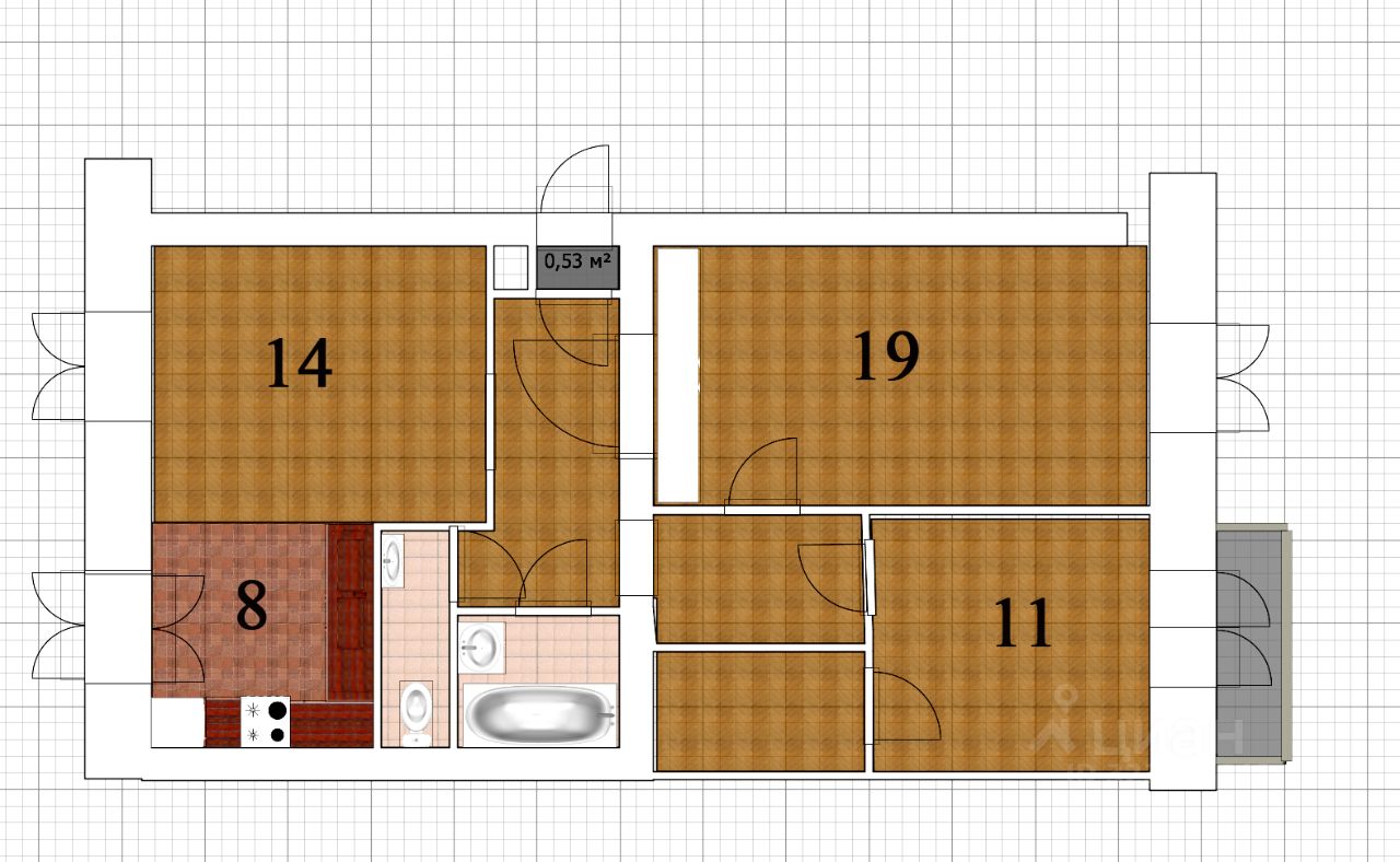 3-комнатная квартира с видом на Малую Невку,