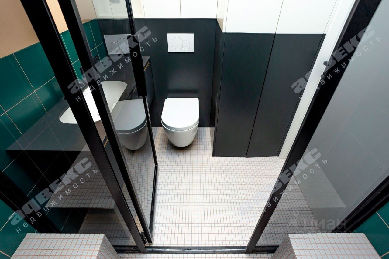 В одном санузле просторная душевая со скамьями с двух сторон, с подогреваемыми стенами и сиденьями-хамам- приятный бонус для прохладного Питера.