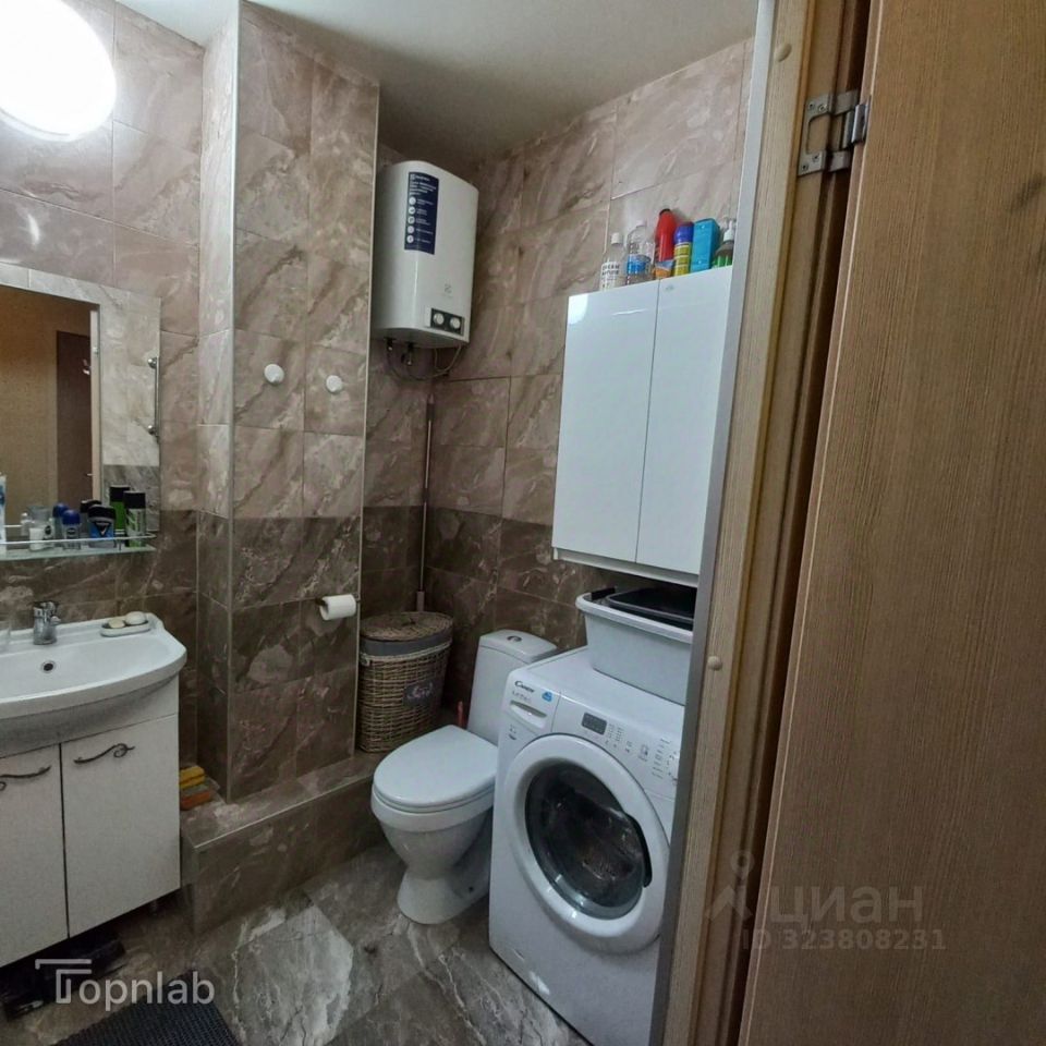 Санузел в кафеле, полноценная ванна, водонагреватель, стиральная машинка.