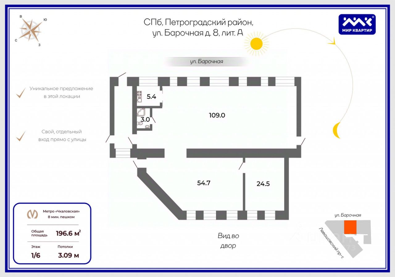 Арт. 97490073 200 кв.м. коммерции на первом этаже, Барочная 8, Петроградский район!
