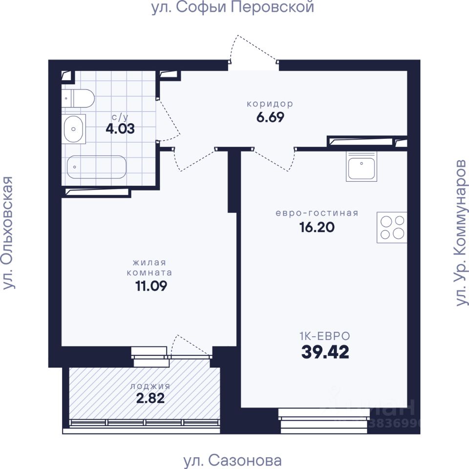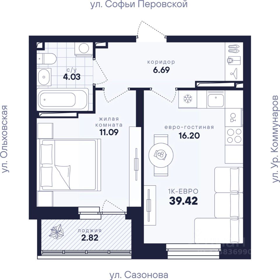 Общая площадь39,42 м2
