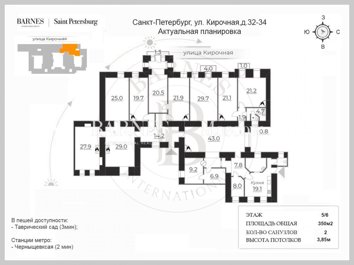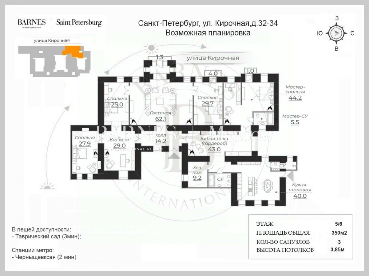 Место расположения - Дом расположен в историческом центре Петербурга на Кирочной улице, вблизи Таврического сада. В двух минутах ходьбы находится ''Ленинград Центр'' одно из самых модных культурных и шоу-пространств пространств Северной столицы. Каждая улица и здание этого района пропитаны историей. В пешей доступности оранжереи, набережная Невы, сад Салтыкова-Щедрина, сад Смольного собора, Музей воды, музей Суворова, Преображенский собор. Район Таврического сада также насыщен важной социальной инфраструктурой: частные сады и школы, учреждения дополнительного образования, премиальные клиники, рестораны высокой кухни, отделения Private Banking. Уникальное сочетание исторической элитной локации и комфорта XXI века.