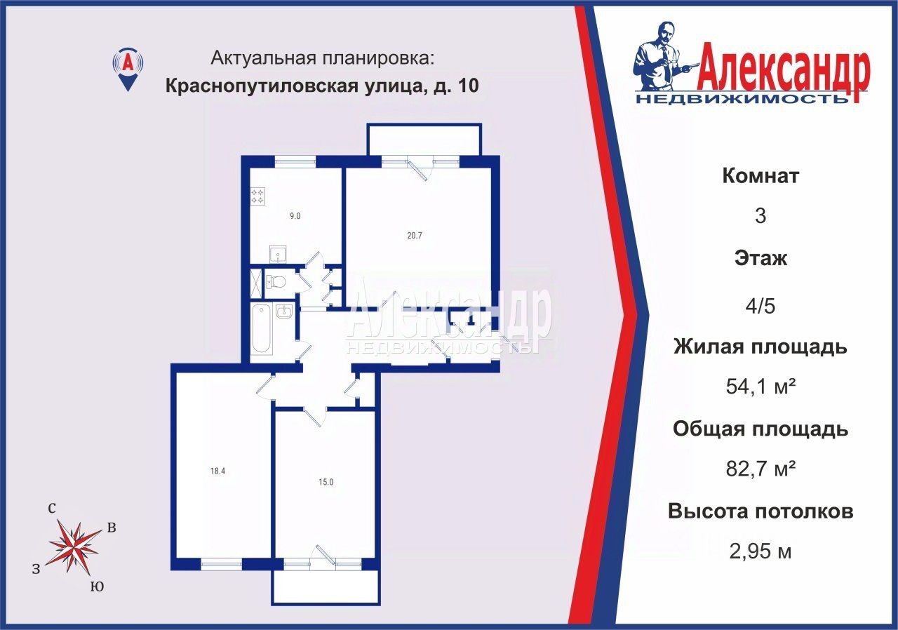 1703760 Уникальное предложение! Продается трехкомнатная квартира в сталинском доме, с двумя балконами, площадью 82,7 кв.м. Квартира находится в Кировском районе в 10-ти минутах ходьбы от метро Кировский завод. Квартира с шикарной планировкой, комнаты с балконами на разные стороны. В квартире отличная планировка: комнаты во двор и на улицу правильной формы, что позволяет сделать расстановку мебели на ваш вкус. Тихий благоустроенный двор утопает в зелени. Отличная транспортная доступность, рядом школа, садик, магазины. Просторный двор, всегда есть место для парковки. В двух комнатах и в ванной сделан ремонт и установлены стеклопакеты, на полу паркет и ламинат, 2 балкона (во двор и на улицу). По площади: комната 20,7 кв.м, вторая комната 18,4 кв.м, третья комната 15 кв.м, кухня 9 кв.м, ванная 3.4 кв.м, туалет 1.3 кв.м, коридор 19,6 кв.м. Высокий потолок 2,95 метра. Показы с 10 декабря! 1 взрослый собственник, встречная покупка, готовы быстро выйти на сделку. Бонусом счастливому покупателю достается мебель и техника. Рассмотрим любые формы оплаты, работаем с материнским капиталом, сертификатами, при необходимости поможем одобрить ипотеку.