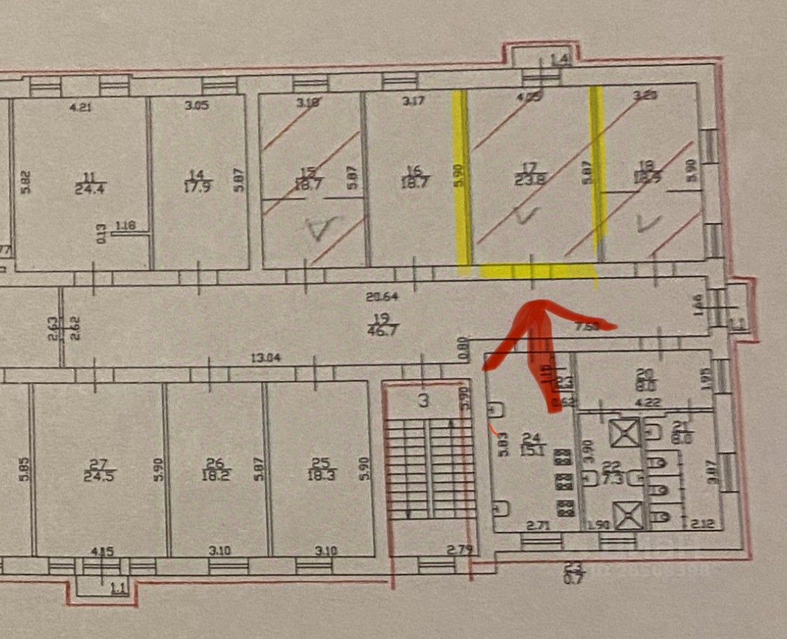 ПРО КОМНАТУ: Комната 24 м² ПРАВИЛЬНОЙ ПРЯМОУГОЛЬНОЙ ФОРМЫ. Ширина комнаты позволяет, при необходимости, очень удобно её зонировать. Высота потока 3,12 что позволяет сделать второй этаж. Балкон.