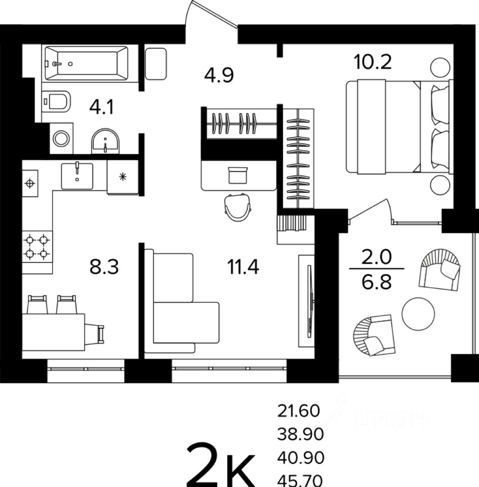 Общая площадь40,9 м2