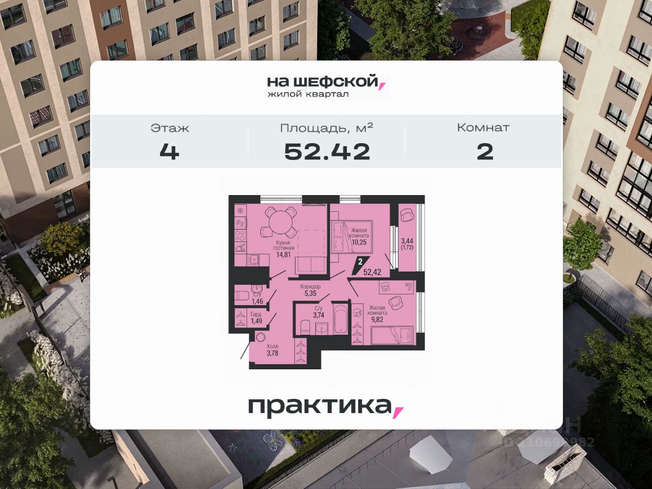 Общая площадь52,42 м2