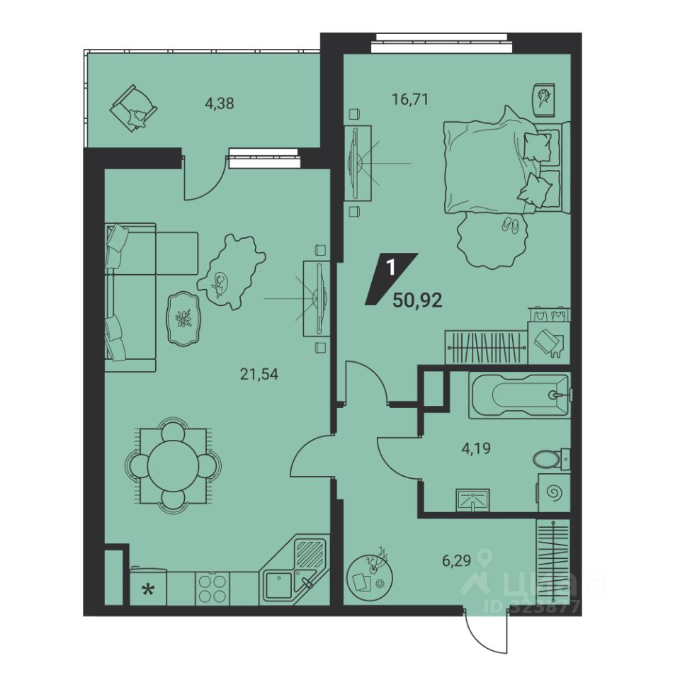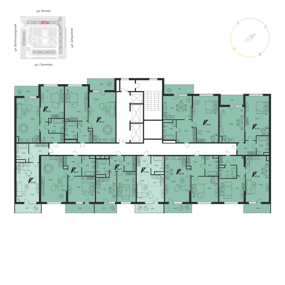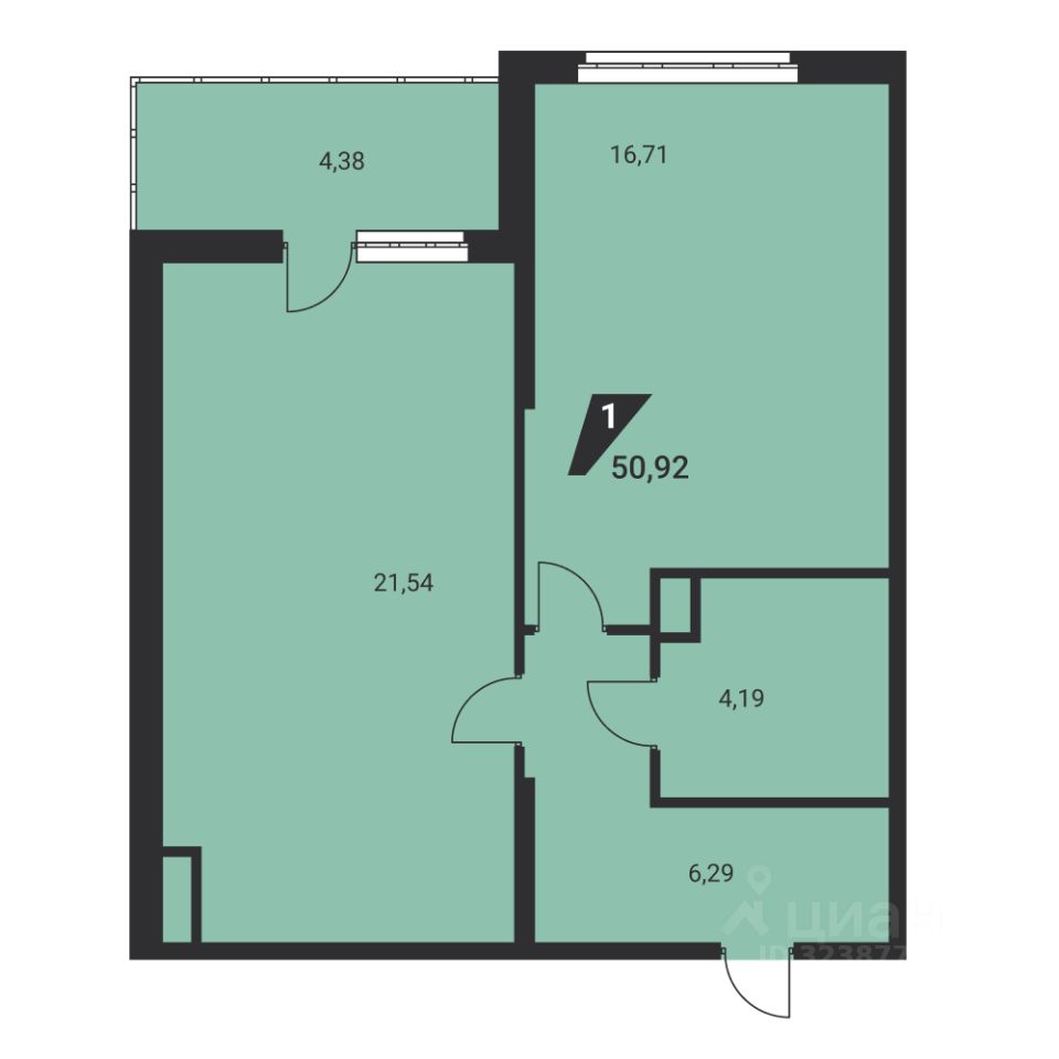 Общая площадь51,4 м2