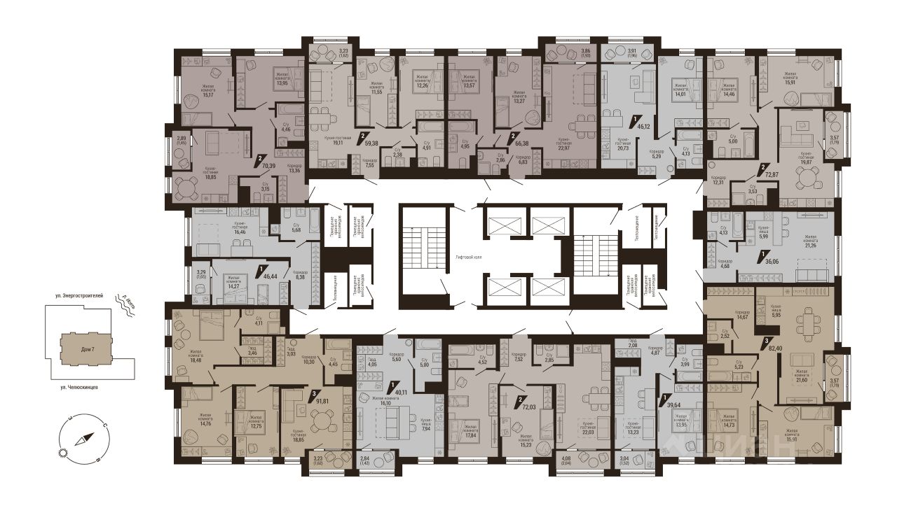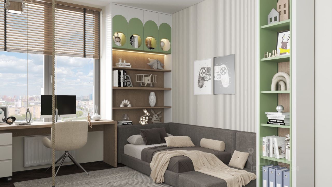Ландшафт продолжает идею здания — современное и функциональное пространство с дизайнерским озеленением и освещением. Для взрослых во дворе расположена лаунж зона, а для детей — спортивная и детская площадка.