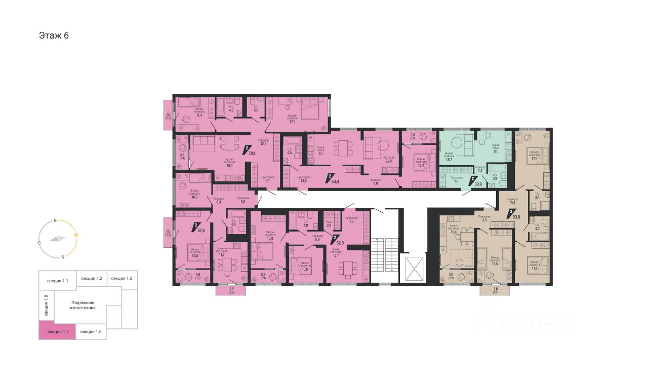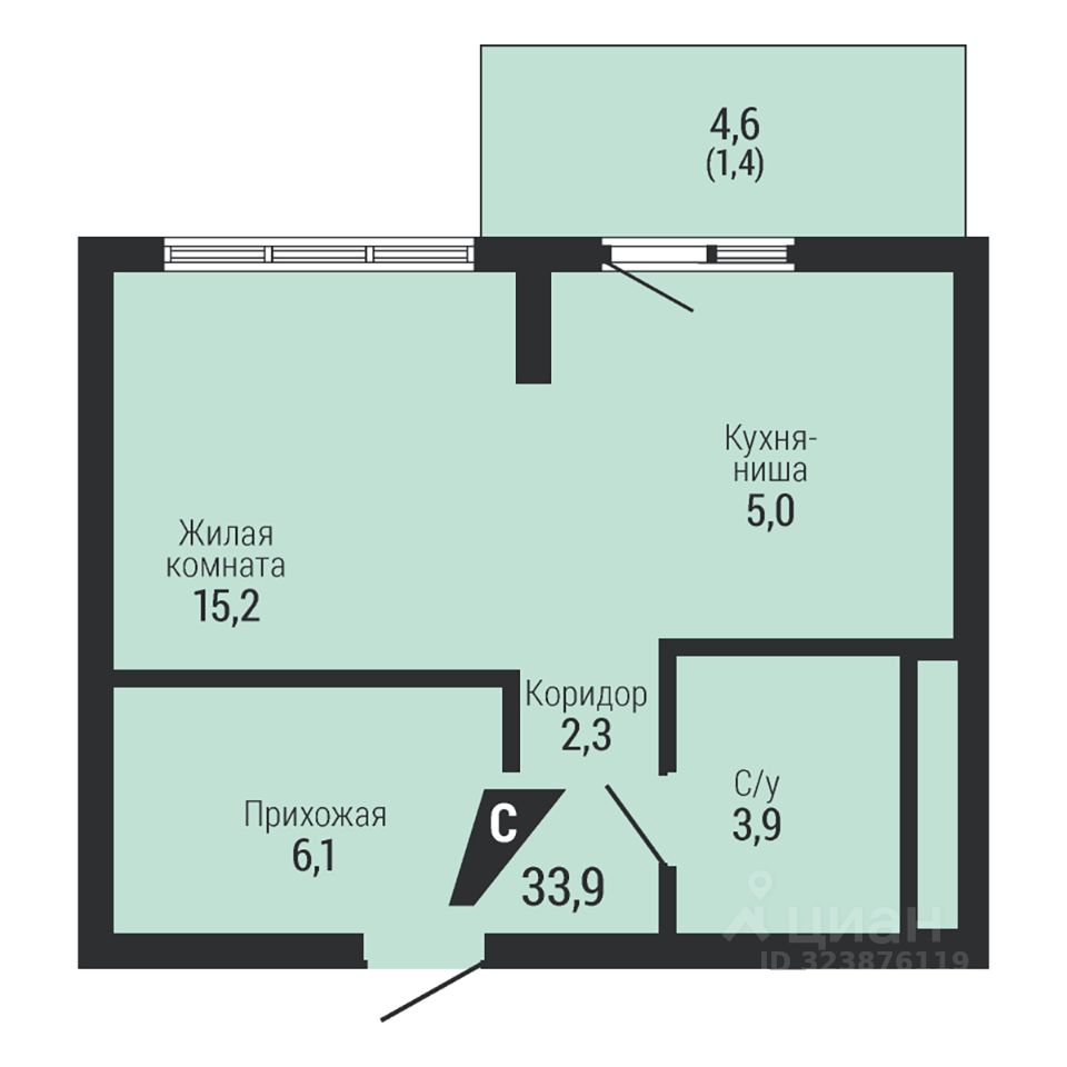 Общая площадь33,9 м2