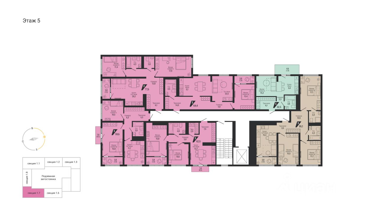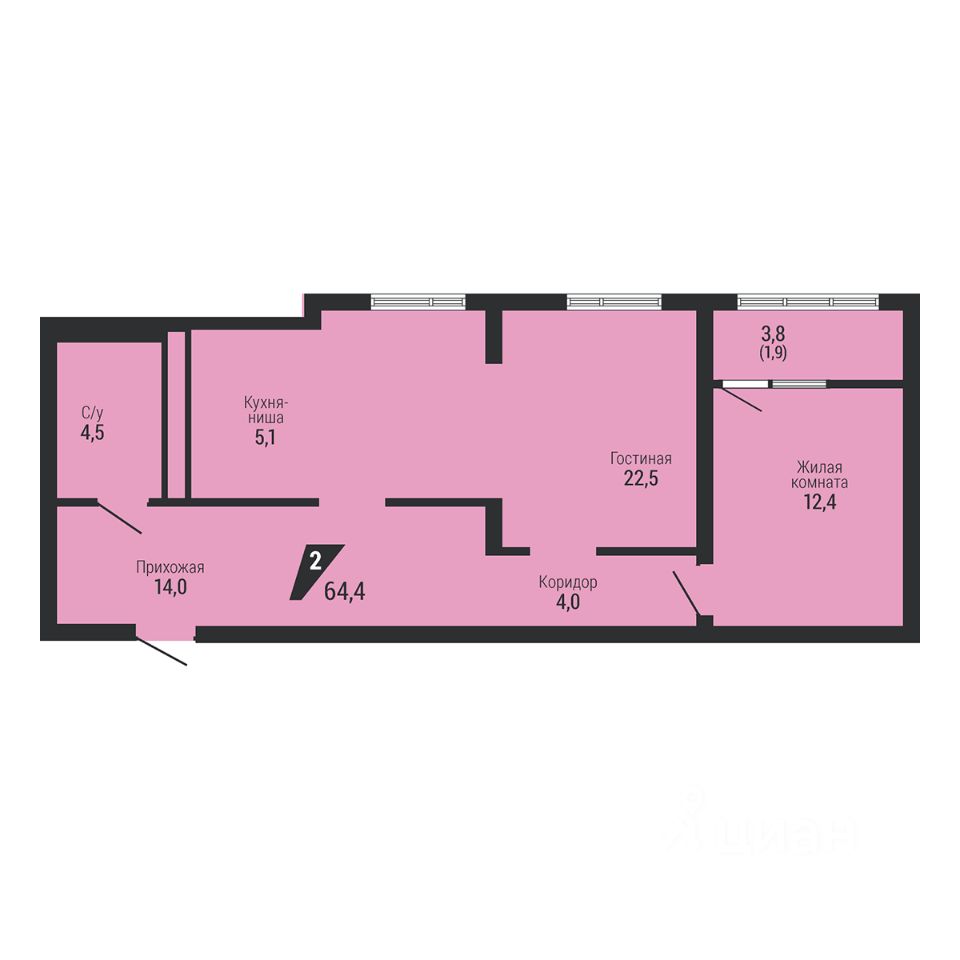 Общая площадь64,4 м2