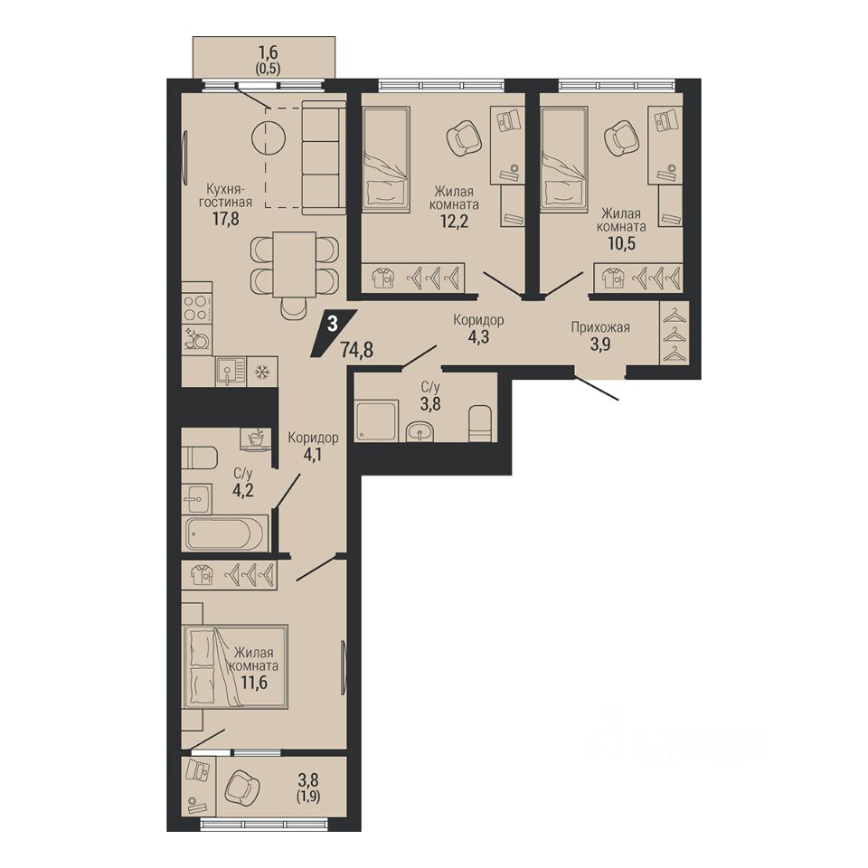 продам 3-к, Мусоргского, гп 19 250 571 ₽