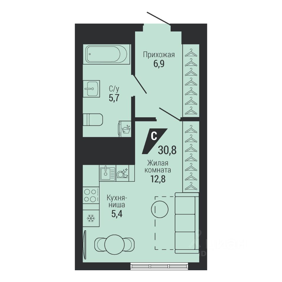 Общая площадь30,8 м2
