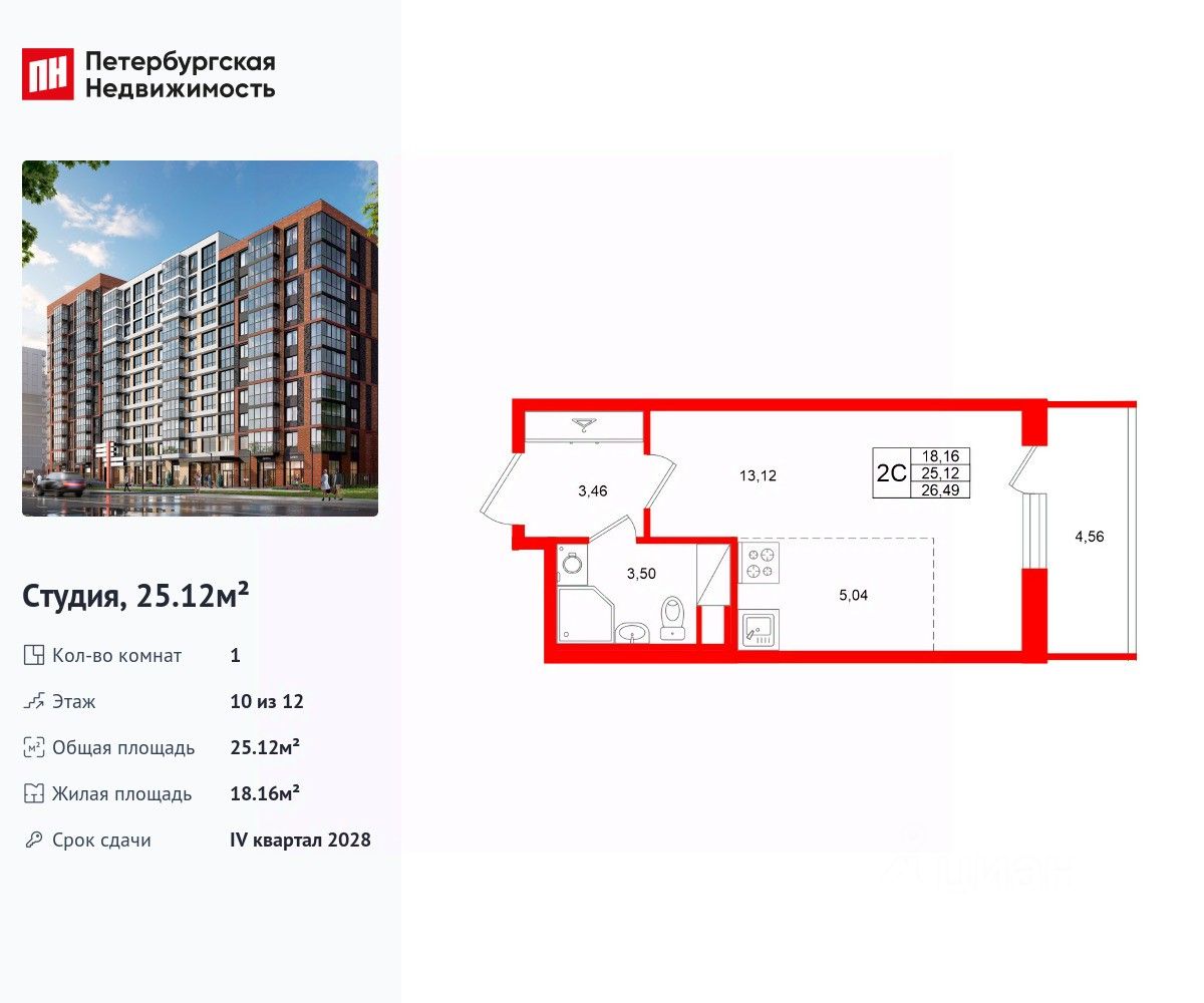 Продается просторная студия от застройщика в жилом комплексе ''Титул в Московском'' в престижном Московском районе.