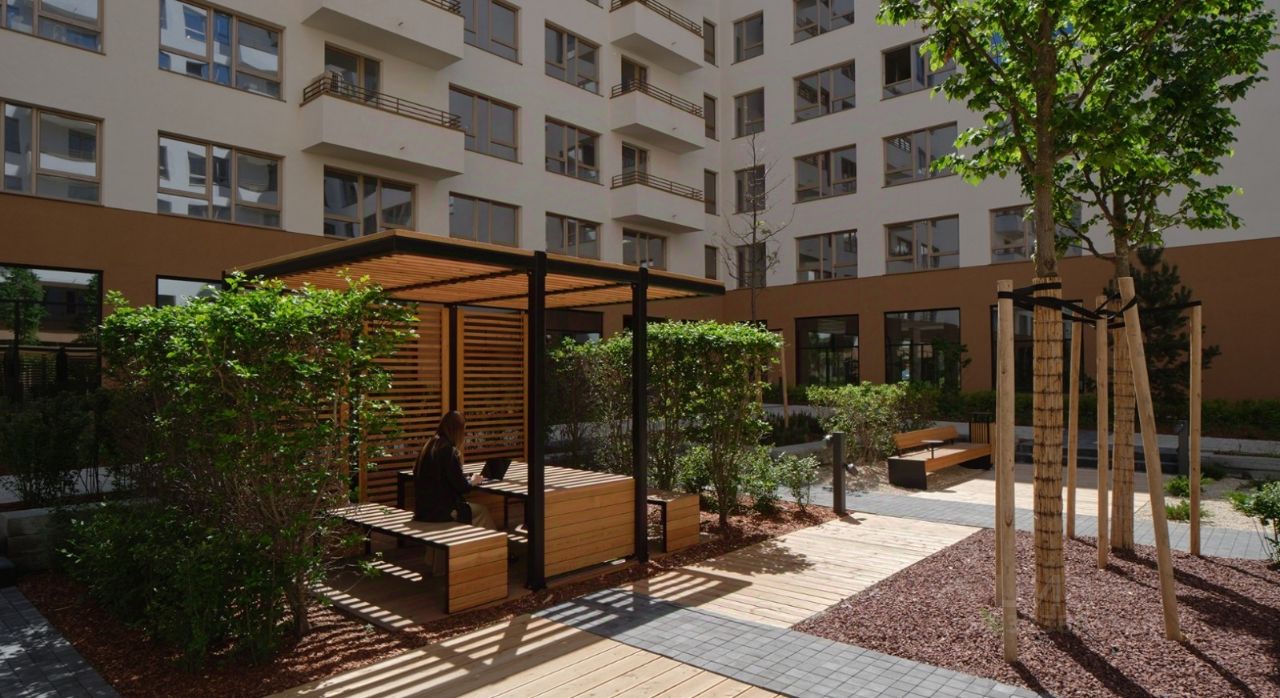 Свяжет территорию сеть общественных пространств. Её центральным звеном станет зелёный променад, проходящий сквозь весь район и соединяющий его с парком 50-летия ВЛКСМ. #Z6g24a