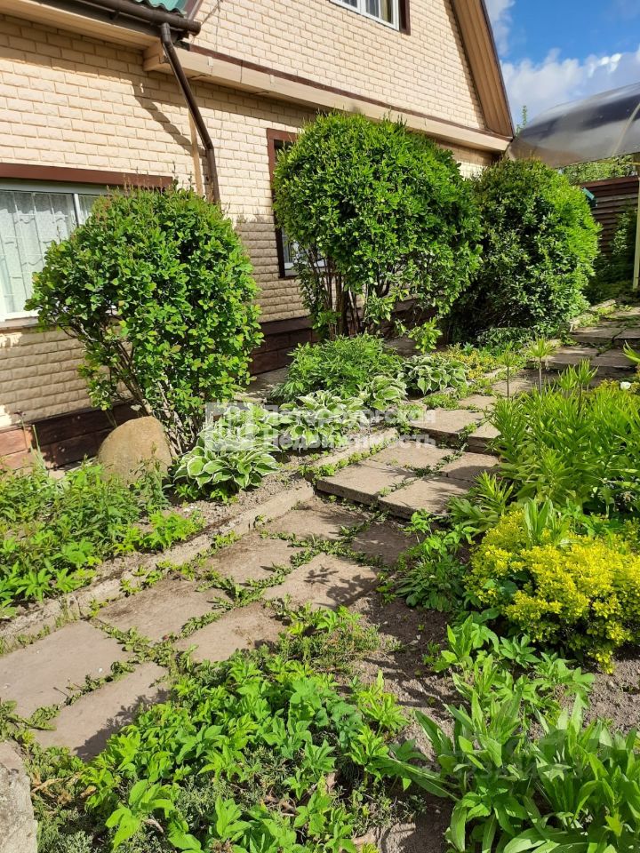 Также на участке находятся: Беседка полуоткрытая. Беседка с мангалом. Крытый металлический навес для автомобиля. Хоз. блок. Дровеник. Теплица из поликарбоната. Погреб. Туалет. Отдельное внимание к ландшафтному дизайну участков и растениям на них: По участку много дорожек и площадок, выложенные тротуарной плиткой и натуральным камнем. Площадки для отдыха с каменной лестницей и бетонной скамьей. На участке три альпийские горки, несколько клумб облицованы натуральным камнем, вазоны с цветами, ухоженный газон, островки красиво подстриженных кустарников разных пород, разнообразные деревья: яблони, липы, каштаны, дубы и туи. Участки огорожены забором из лиственницы и покрыты финской краской, с воротами для заезда автомобиля. Дорога до дома- асфальт. На границе со вторым участком есть ПРУД.