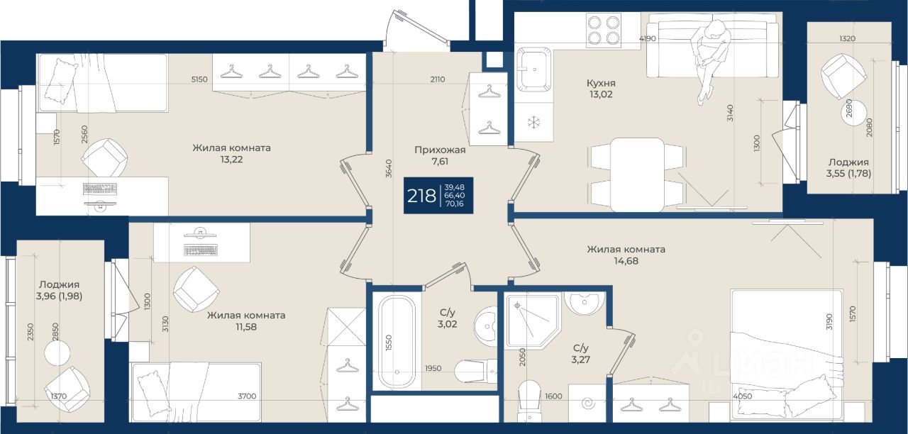 Жилой комплекс ''Новатория'', 1 очередь строительства, Корпус Б, Квартира 218 общей площадью 70,16 м2 на 4 этаже.ЖК ''Новатория'' —жилой комплекс комфорт-класса расположен в поселке Новоселье, в окружении леса и Шунгеровского заказника.