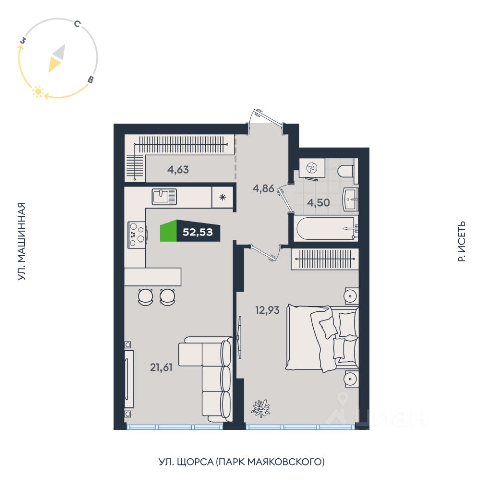 Продаётся 2-комнатная квартира в строящемся доме (Дом 8 (17А-17В)), срок сдачи: III кв. 2027, общей площадью 52.53 кв.м., на 2 этаже. В жилом квартале есть собственный выход в ЦПКиО им. Маяковского для утренних пробежек и отдыха всей семьёй.