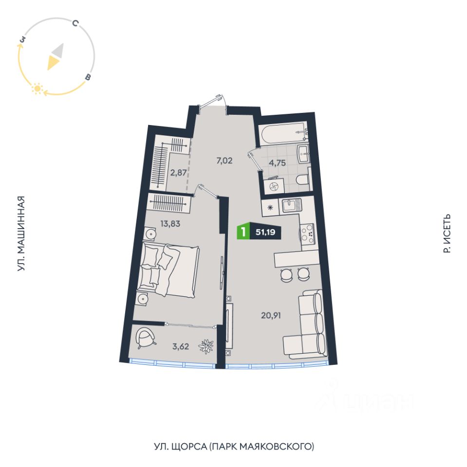 Продаётся 1-комнатная квартира в строящемся доме (Дом 8 (17А-17В)), срок сдачи: III кв. 2027, общей площадью 51.19 кв.м., на 12 этаже. В жилом квартале есть собственный выход в ЦПКиО им. Маяковского для утренних пробежек и отдыха всей семьёй.